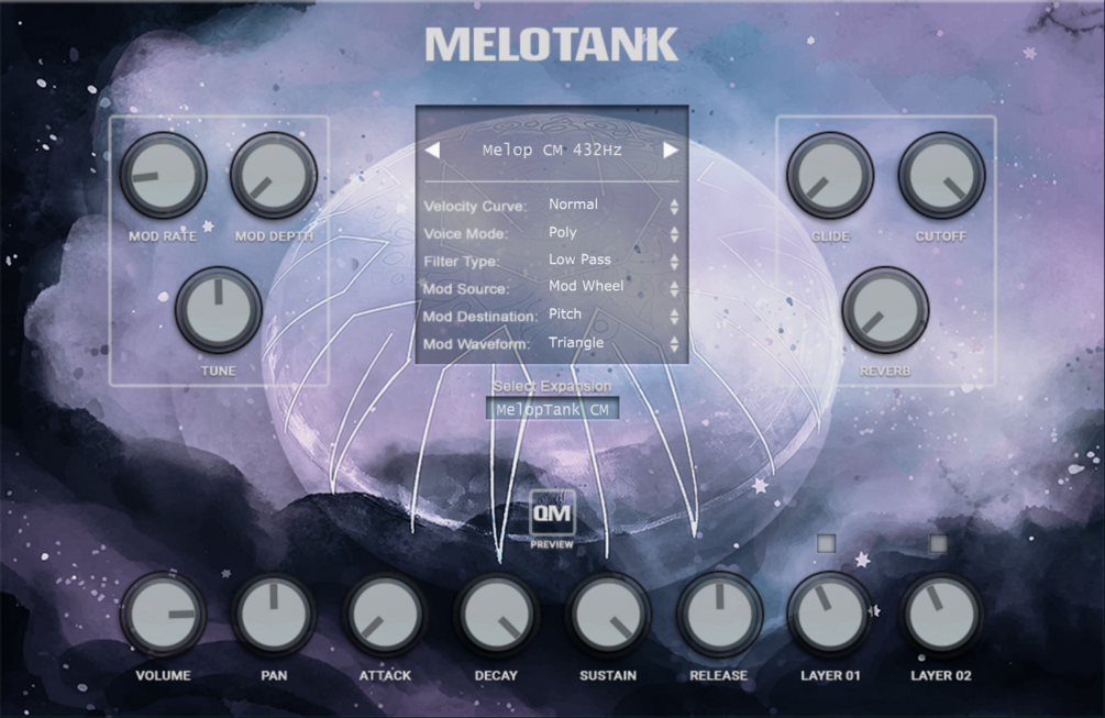 MeloTank is a free instrument for Windows and Mac, created from the recording of a 12-note Tank Drum, tuned at 432 Hz, processed with several high-quality effect pedals and plugins.